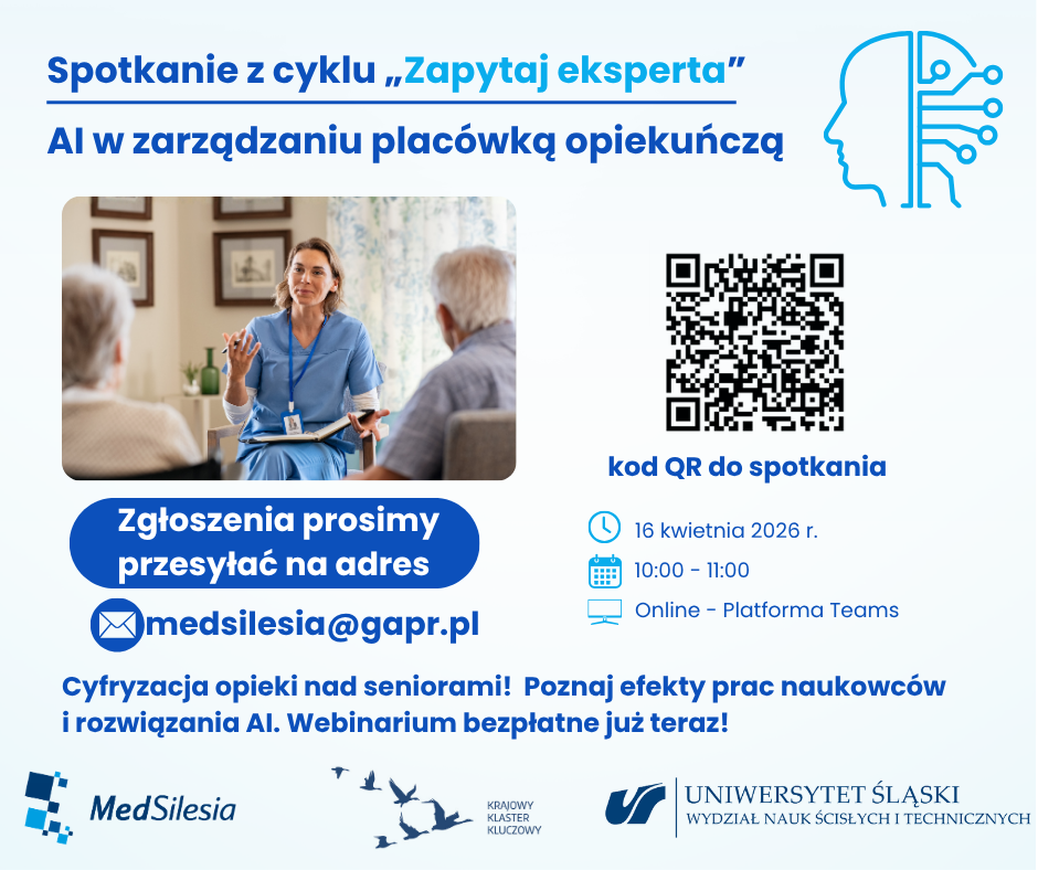 Klaster MedSilesia, działający w ramach Górnośląskiego Akceleratora Przedsiębiorczości Rynkowej, jest współorganizatorem bezpłatnego webinarium pt. „AI w zarządzaniu placówką opiekuńczą”, realizowanego wspólnie z Uniwersytetem Śląskim w Katowicach w ramach cyklu „Zapytaj eksperta”. Wydarzenie odbędzie się 16 kwietnia 2026 r. w godzinach 10:00–11:00 w formule online. Podczas spotkania zaprezentowana zostanie działalność Klastra MedSilesia, który pełni istotną rolę […]