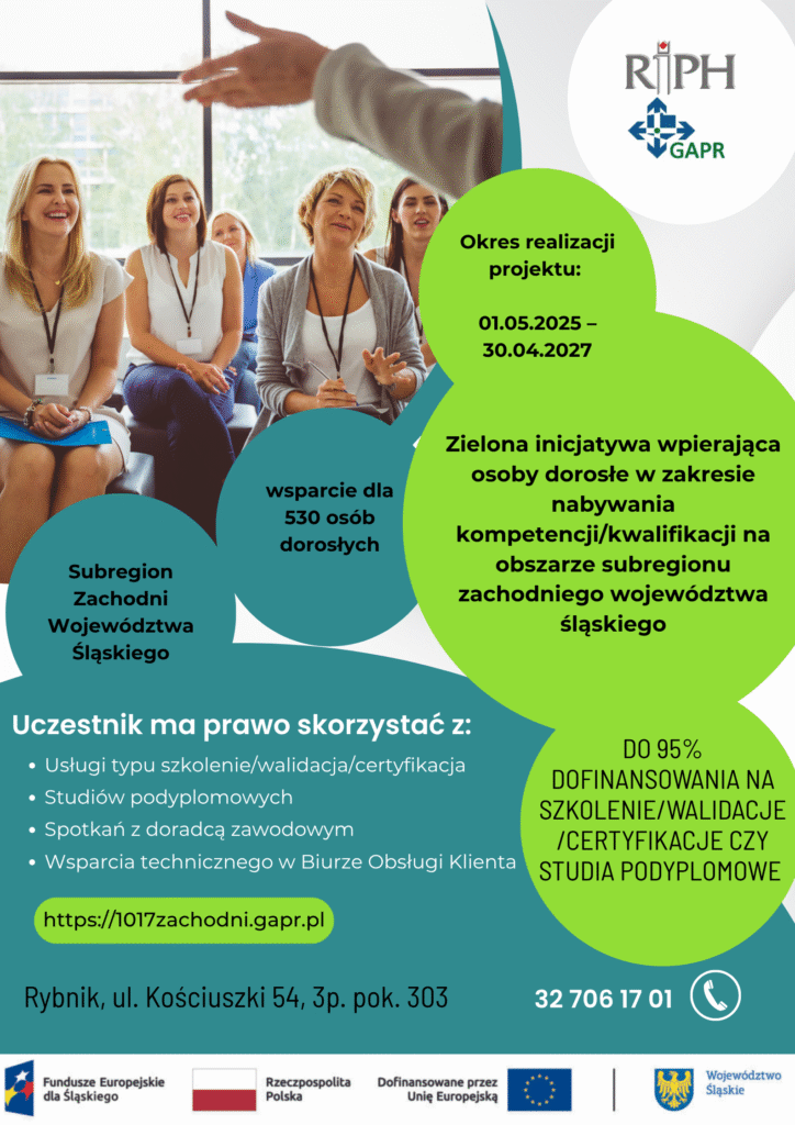 W dniu dzisiejszym rozpoczynamy 3 nabór fiszek do projektu „Zielona inicjatywa wpierająca osoby dorosłe w zakresie nabywania kompetencji/kwalifikacji na obszarze subregionu zachodniego województwa śląskiego”.